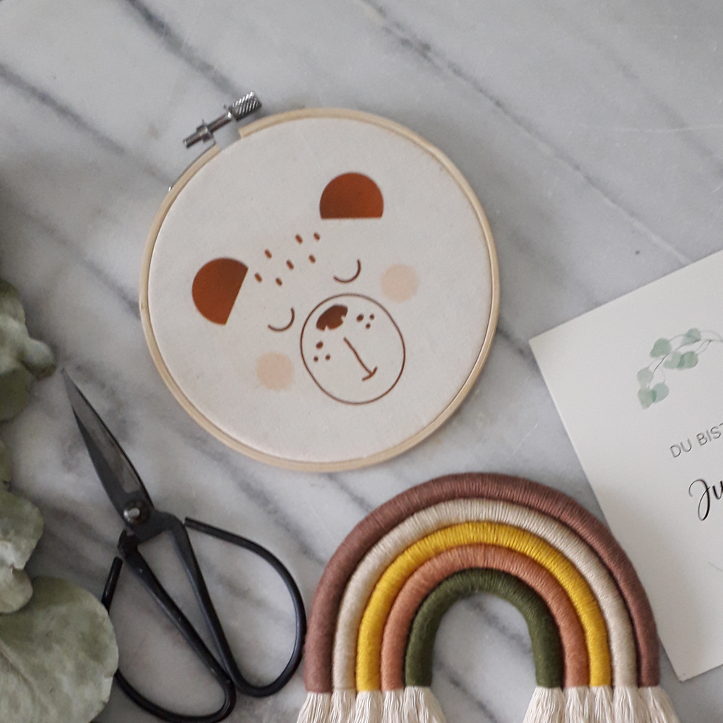 Im Lieferumfang ist die Dekoration nicht enthalten, lediglich der Stickrahmen!