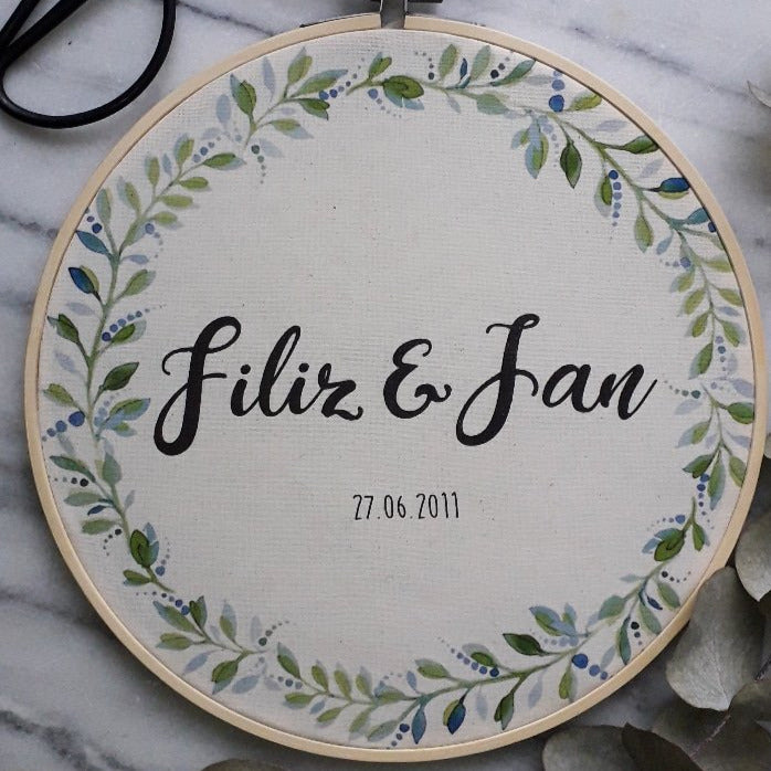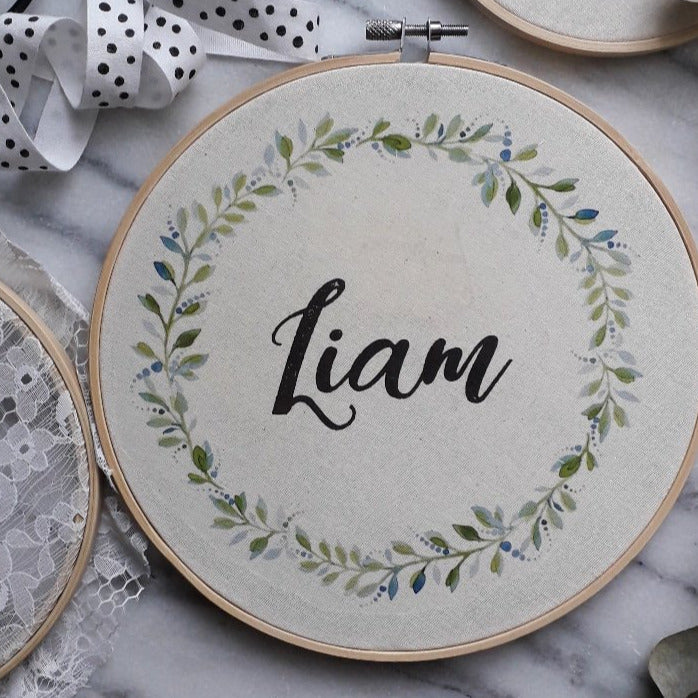 Der Stickrahmen wird von uns in sorgfältiger Handarbeit für dich angefertigt und mit dem Wunschnamen bedruckt.