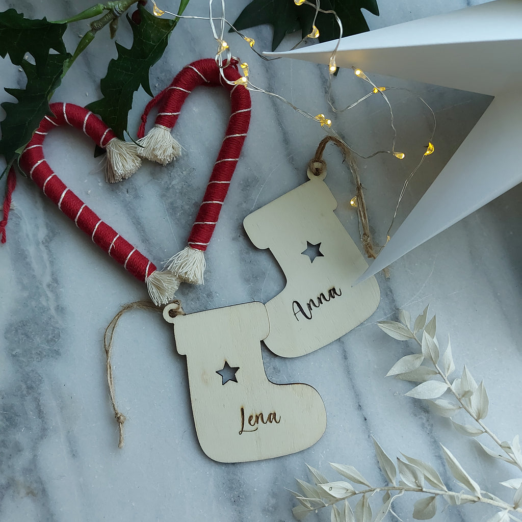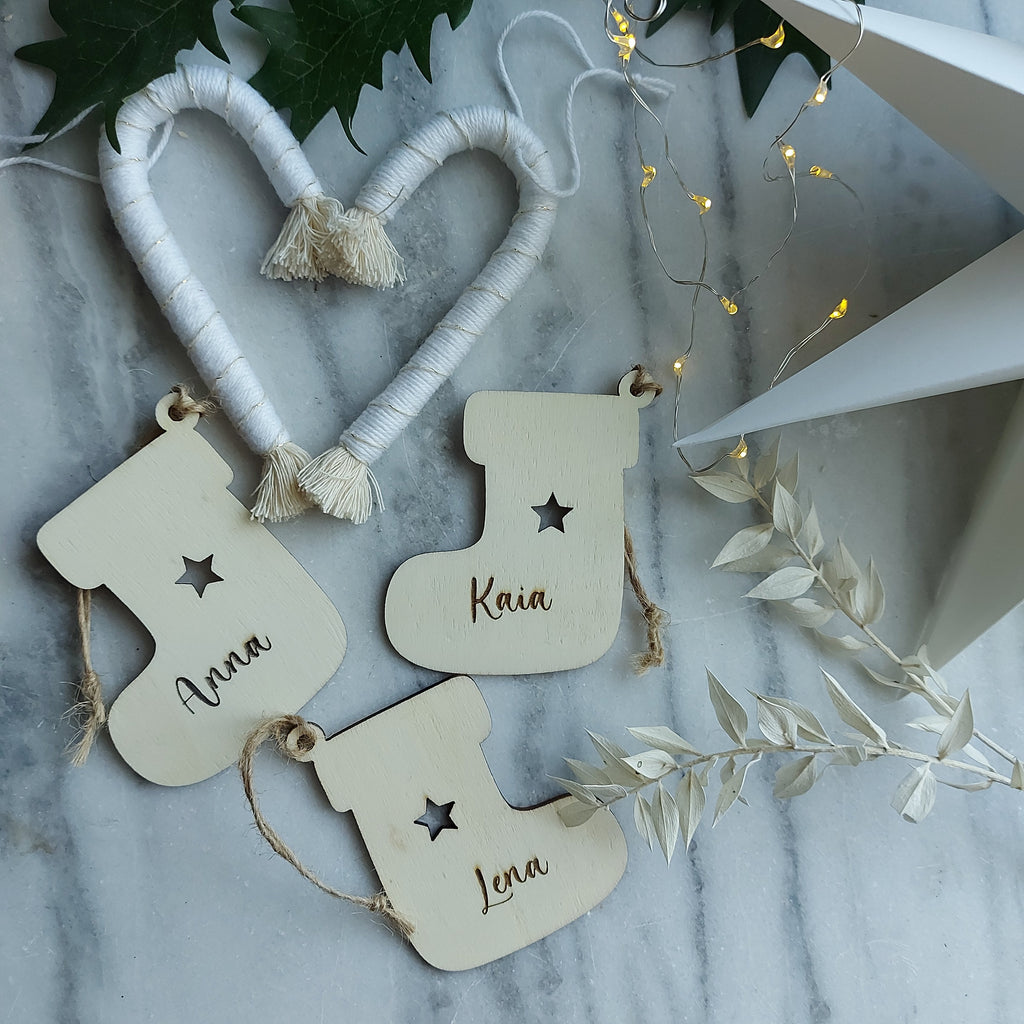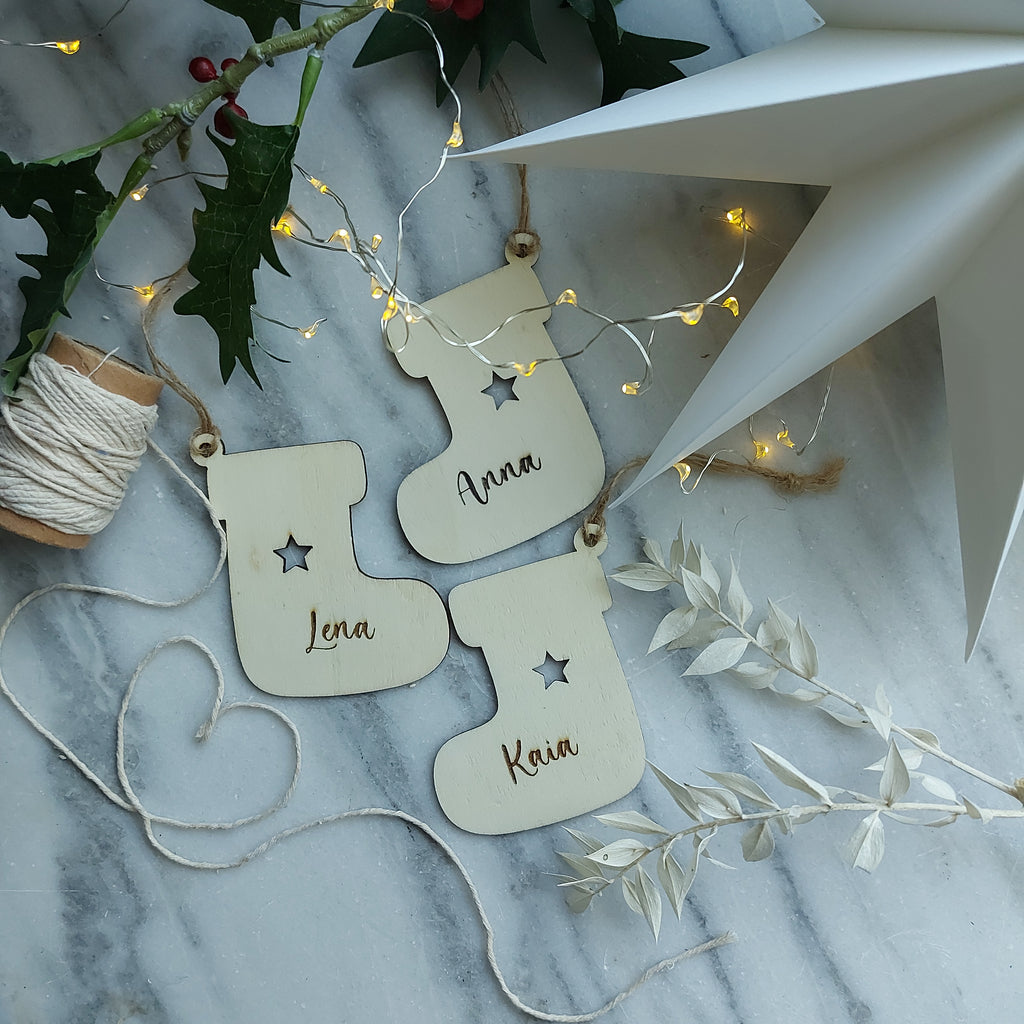 Anhänger aus Sperrholz in Form eines Nikolausstiefel.