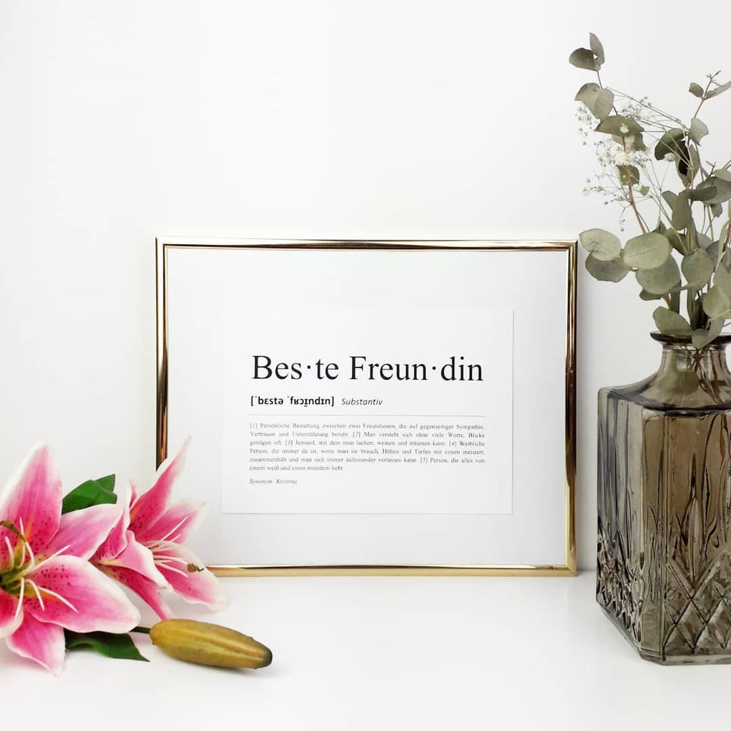 Beste Freundin im Querformat. Bei Synonym kann ein Name (oder Namen) ergänzt werden, bitte im Hinweisfeld angeben. Andernfalls wird es ohne Personalisierung gedruckt. Textänderungen bitte auch im Hinweisfeld angeben.